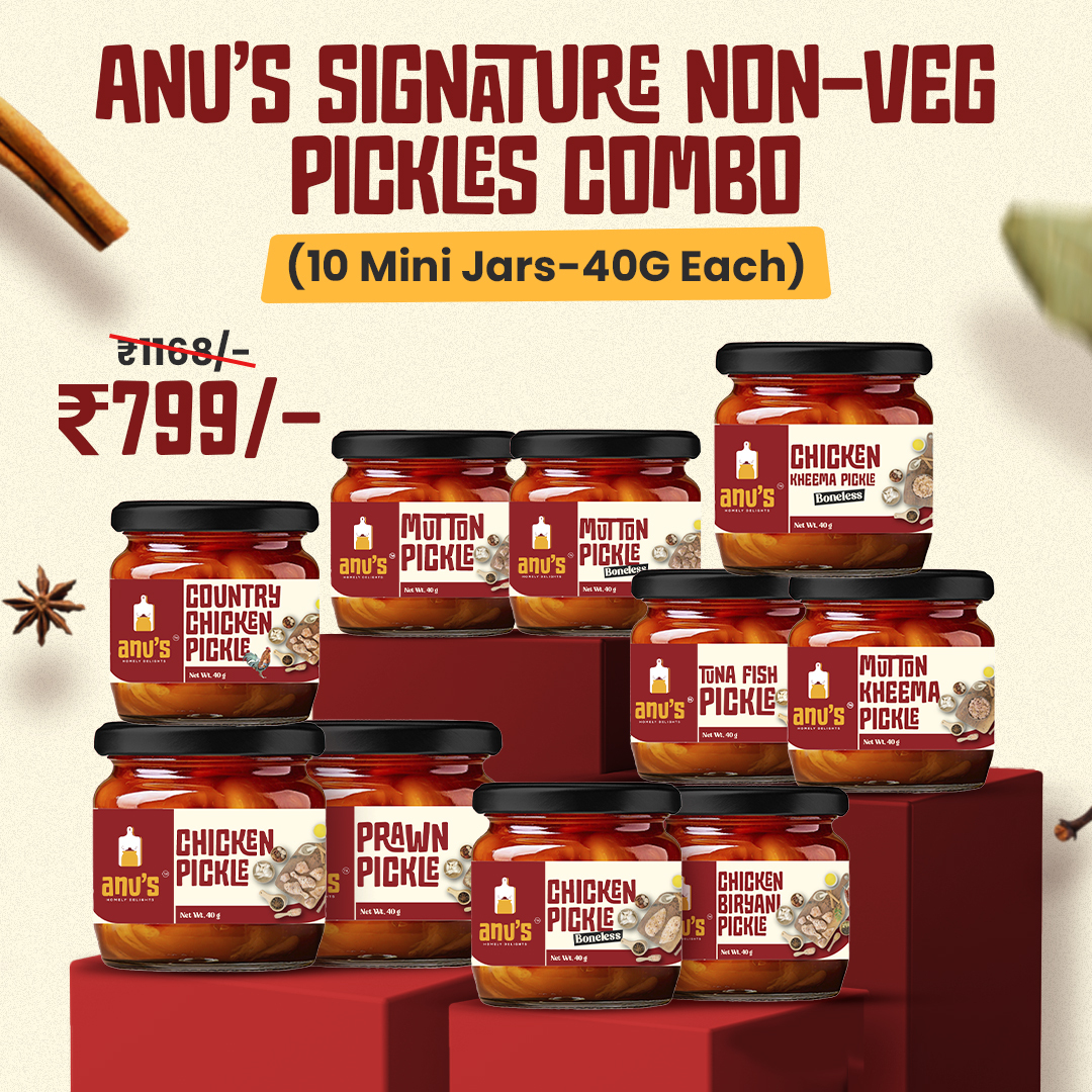 Anu’s Signature Non-Veg Pickles Combo (10 Mini Jars – 40g each)